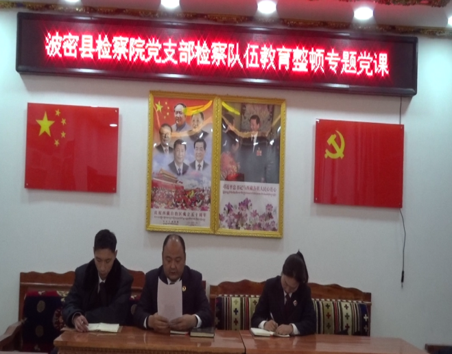 近期,波密县人民检察院为深入政法队伍教育整顿工作,按照政法队伍教育整顿学习教育阶段部署安排,支部书记周荣波为我院全体党员上“坚守为民初心 筑牢忠诚检魂”专题党课。